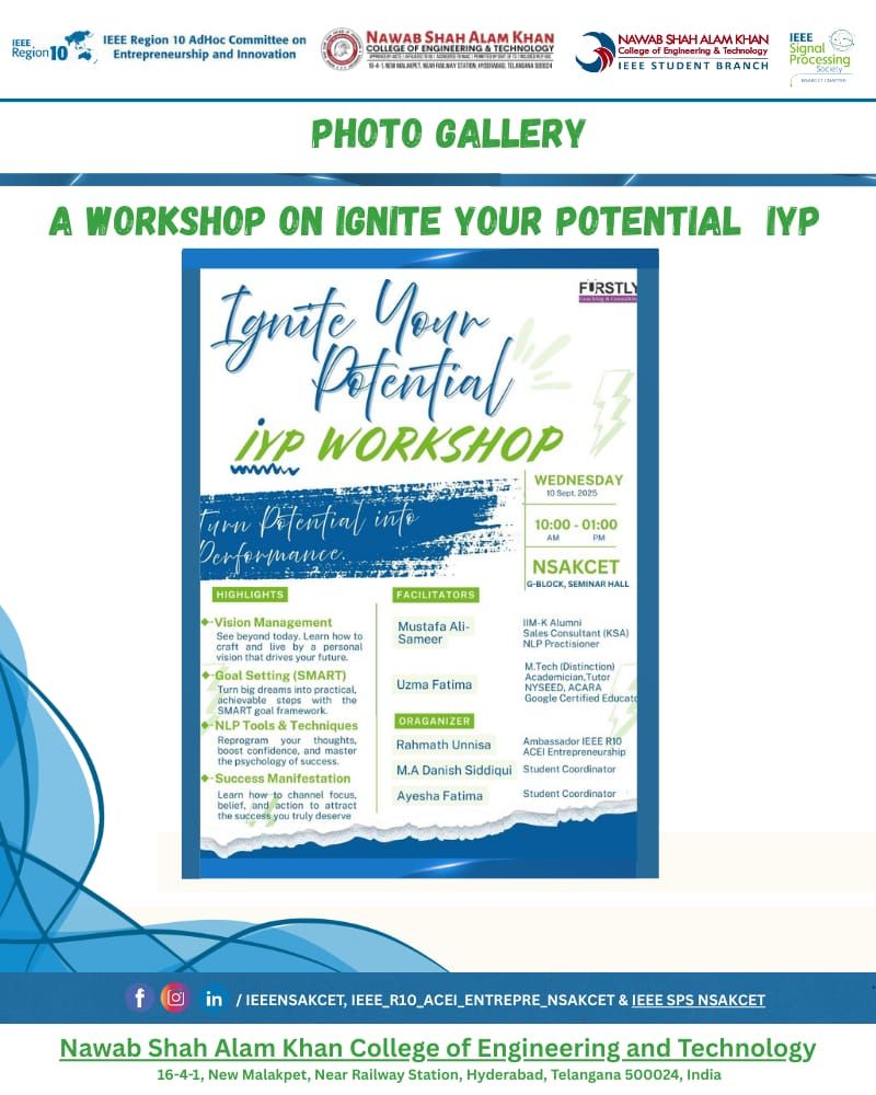 The IEEE Signal Processing Society Student Branch Chapter at NSAKCET functions under the visionary guidance of our Faculty Advisor, Ms. Rahmath Unnisa.